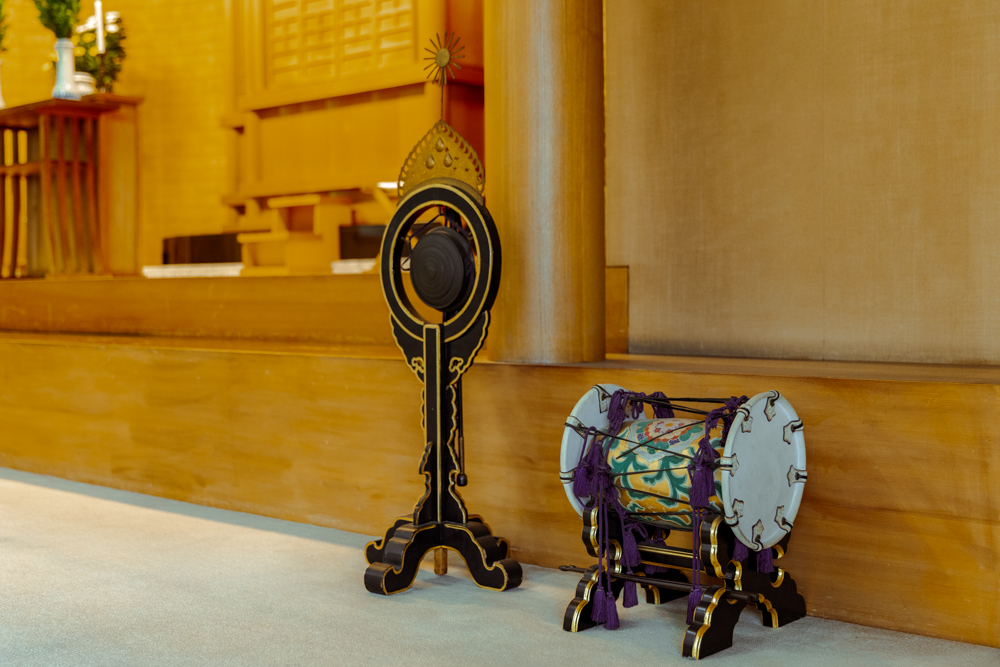 最大約300人を収容することができる本堂では毎日の供養や、法要などを行なっています。また、講堂機能も備えており講演等も行えます。