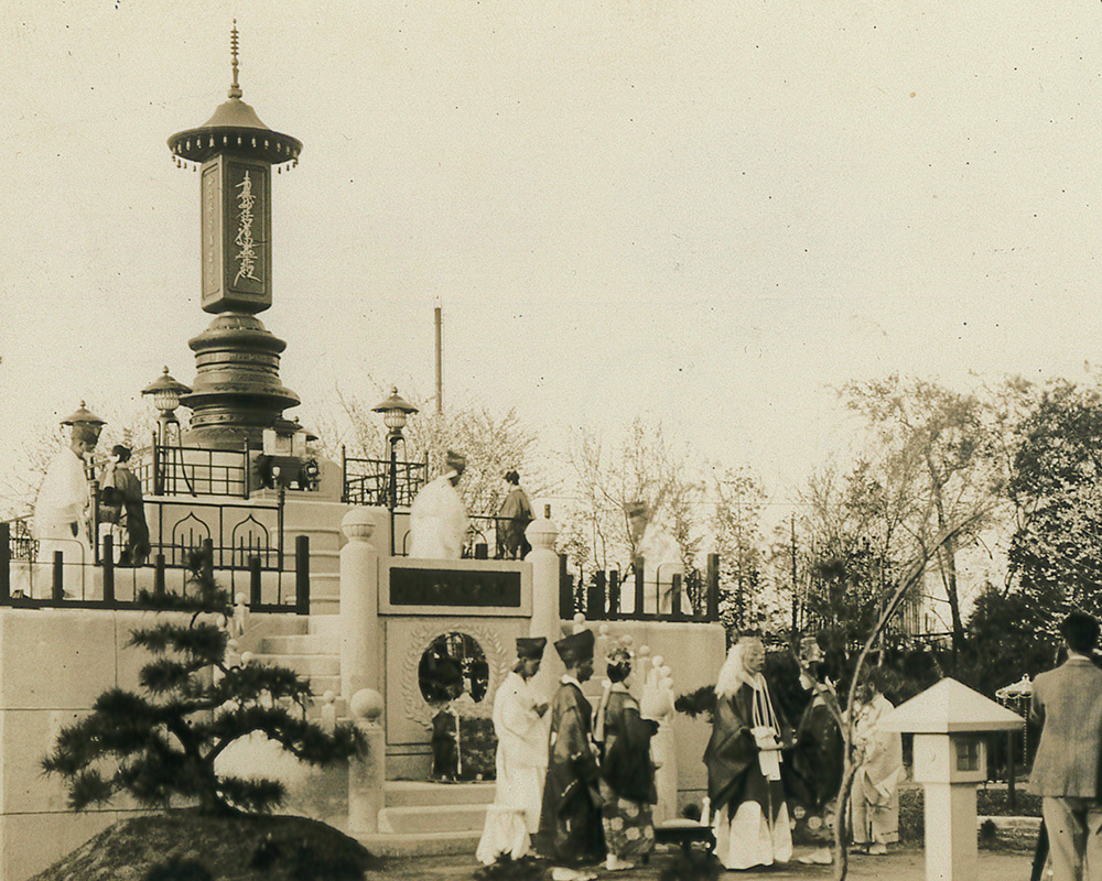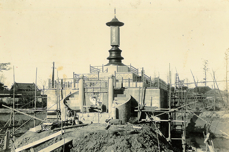 1884年(明治17年)、法華経と日蓮聖人の教えを信仰し、世界全体の幸福と平和を祈り、「立正安国(日蓮聖人言葉)」を掲げる「立正安国会(現・国柱会)」が創立されました。その創始者・田中智学の基本理念である「人間は仏子として皆平等」という仏教の教えのもと、身分も男女の差もなくひとつのお墓で平等に祀られる一塔合安式のお墓が1928年(昭和3年)、東京江戸川区一之江の地に建立されました。