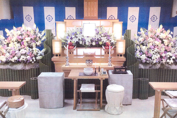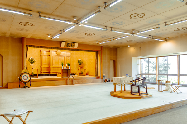 式場では家族葬から一般的な葬儀まで、当園の形式(本化妙宗)にて執り行わせていただきます。